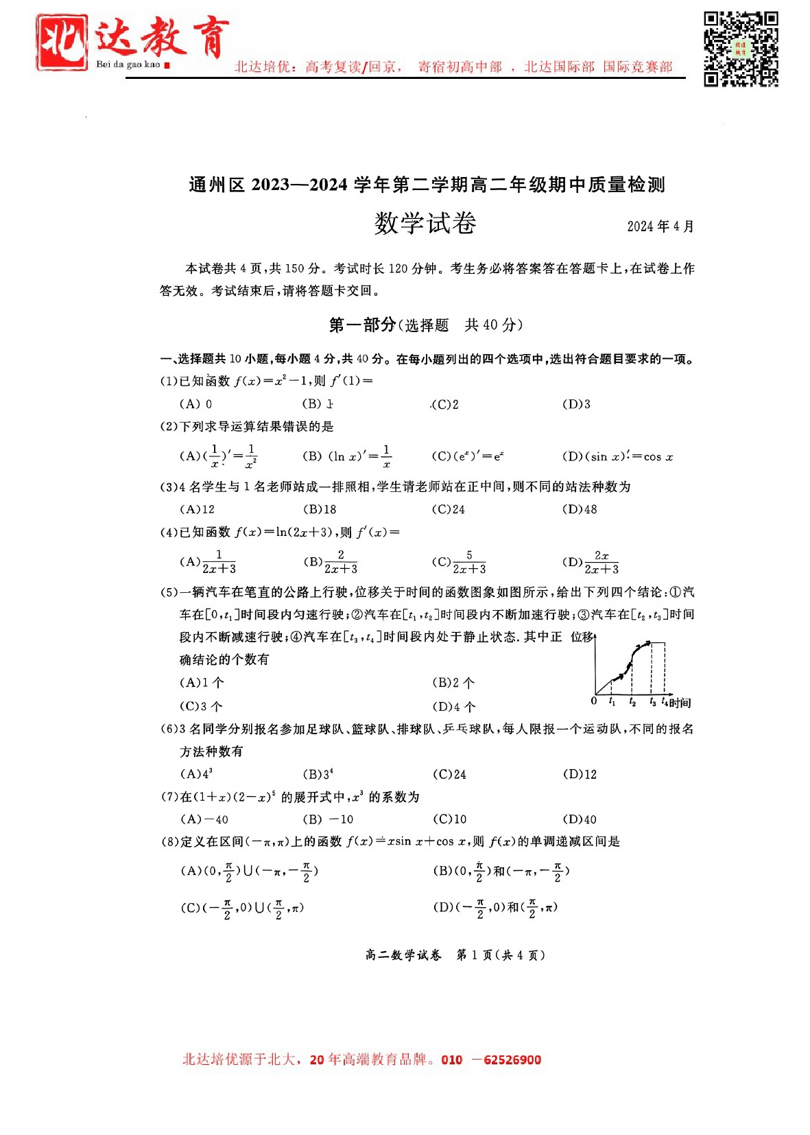 2024年北京通州高二(下)期中开考,admw360教育整理了2024北京通州高二(下)期中数学试卷含答案,分享给同学们。