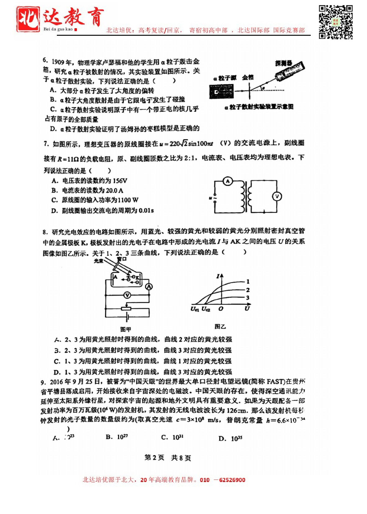 2024年北京一零一中高二(下)期中开考,admw360教育整理了2024北京一零一中高二(下)期中物理试卷,分享给同学们。 导读推荐:2024北京各区高二(下)期中试题及答案汇总 试题预览…