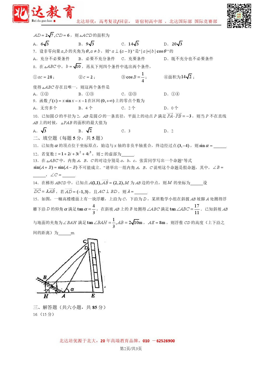 2024年北京一六六中高一(下)期中开考,admw360教研组整理了2024北京一六六中高一(下)期中数学试卷,分享给同学们。 导读推荐:2024北京各区高一(下)期中试题及答案汇总 北京北…
