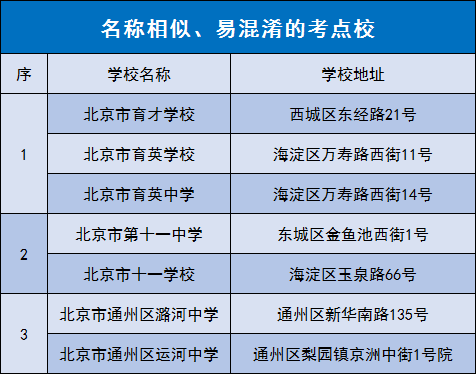 一些考点校有多个不同校区,考生要仔细了解自己要到哪个校区参加考试。