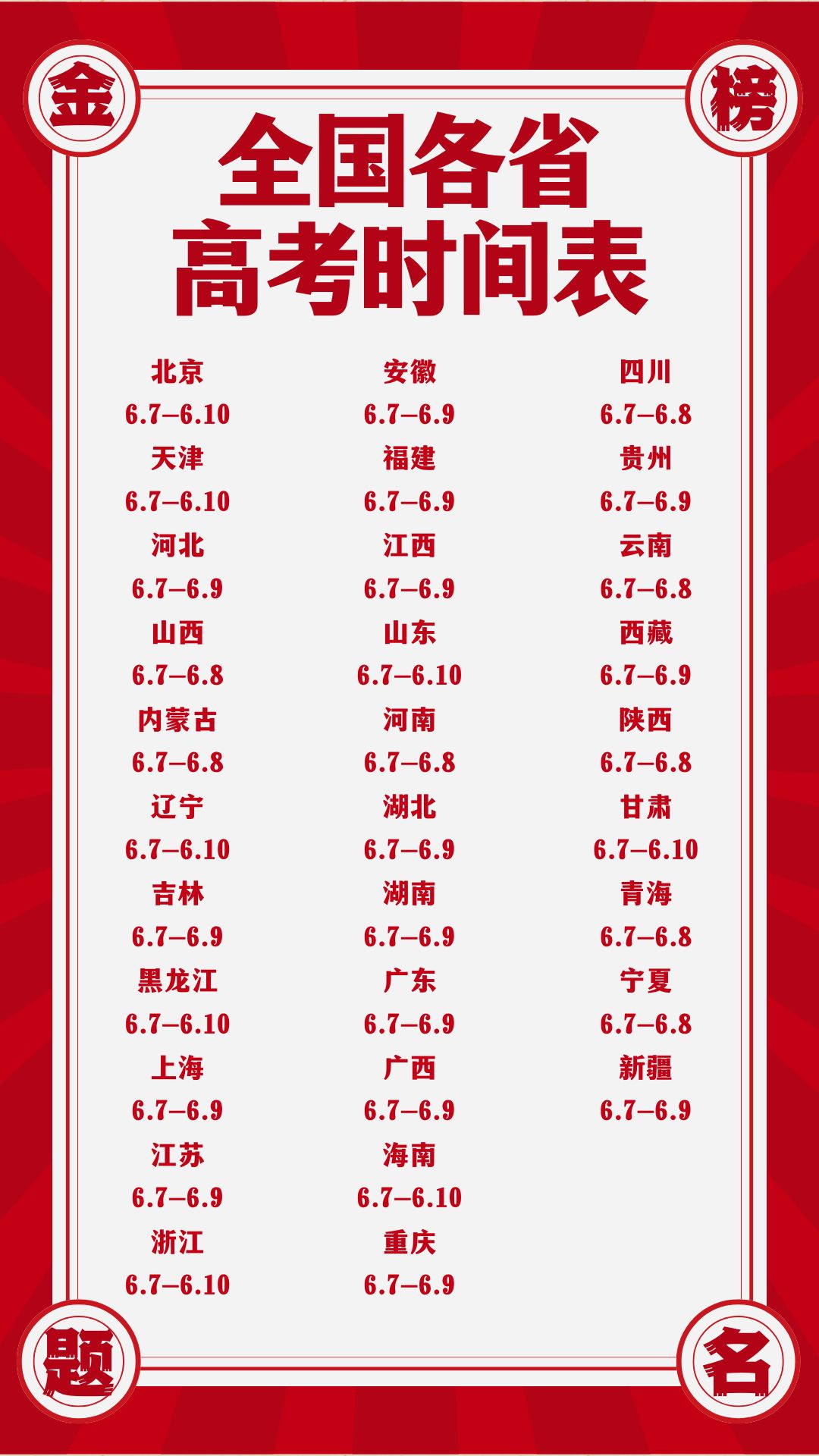 目前,2024年全国各省市高考时间表确定,admw360教研组特意整理了相关内容,并在此提醒考生们遵守考场规则,沉着应对高考。低年级的同学也可以提前了解高考时间安排。