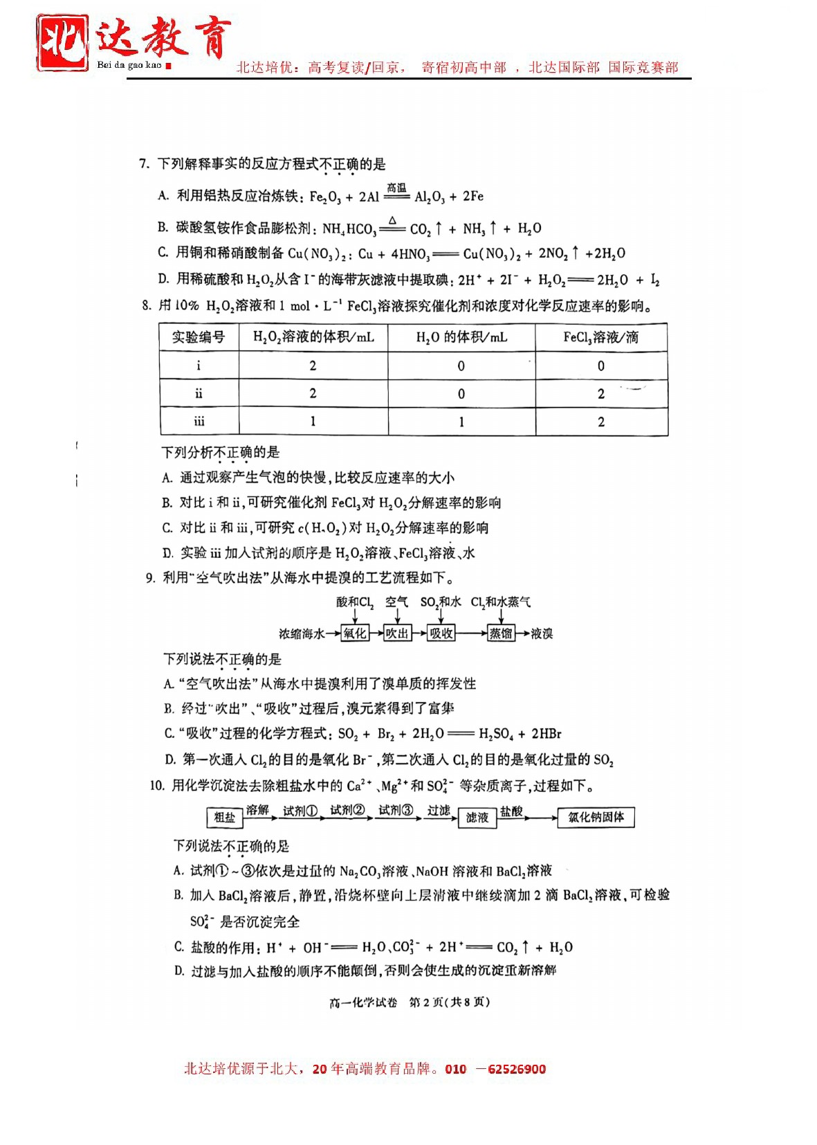 北京市2024高一下学期期末考试于7月初开考,为了方便同学们查找相关试题及答案,本文特意整理了2024北京朝阳高一(下)期末化学试卷含答案,详情如下: