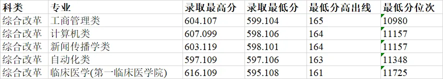 物理组(工商管理类)最低597分,物理化学组(理工科专业)最低分600分,不限组(文科组)最低分604分。