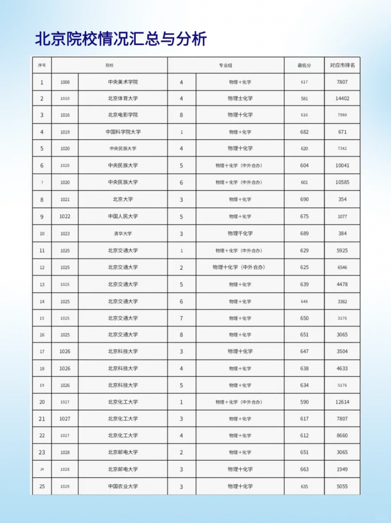 今年各高校在京招生专业组共计1258个,其中选考科目“物理+化学”必须选考专业组568个,小编整理了2024北京高考本科普通批次京内院校物化选科专业组在京录取最低分及对应市排名,一起来看吧~