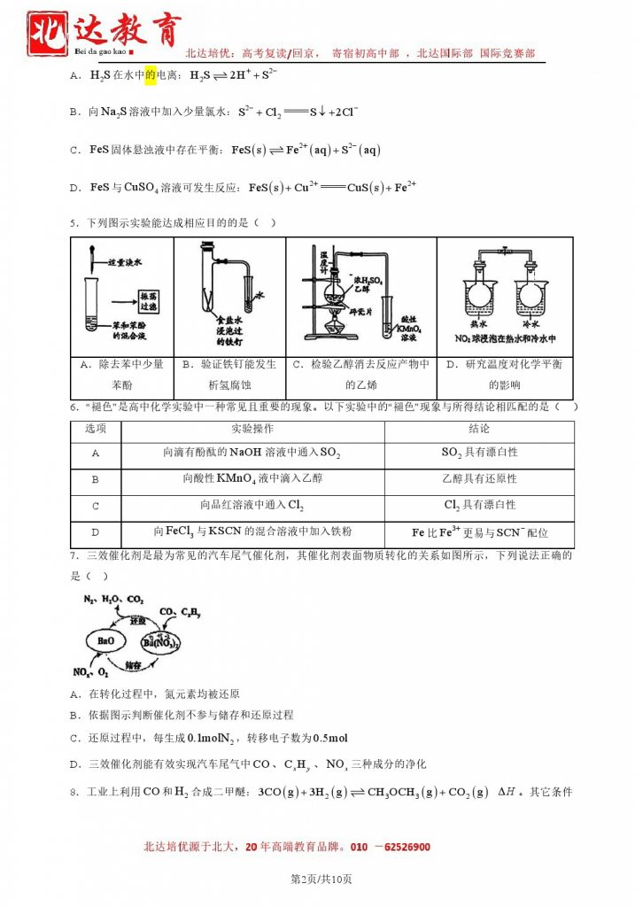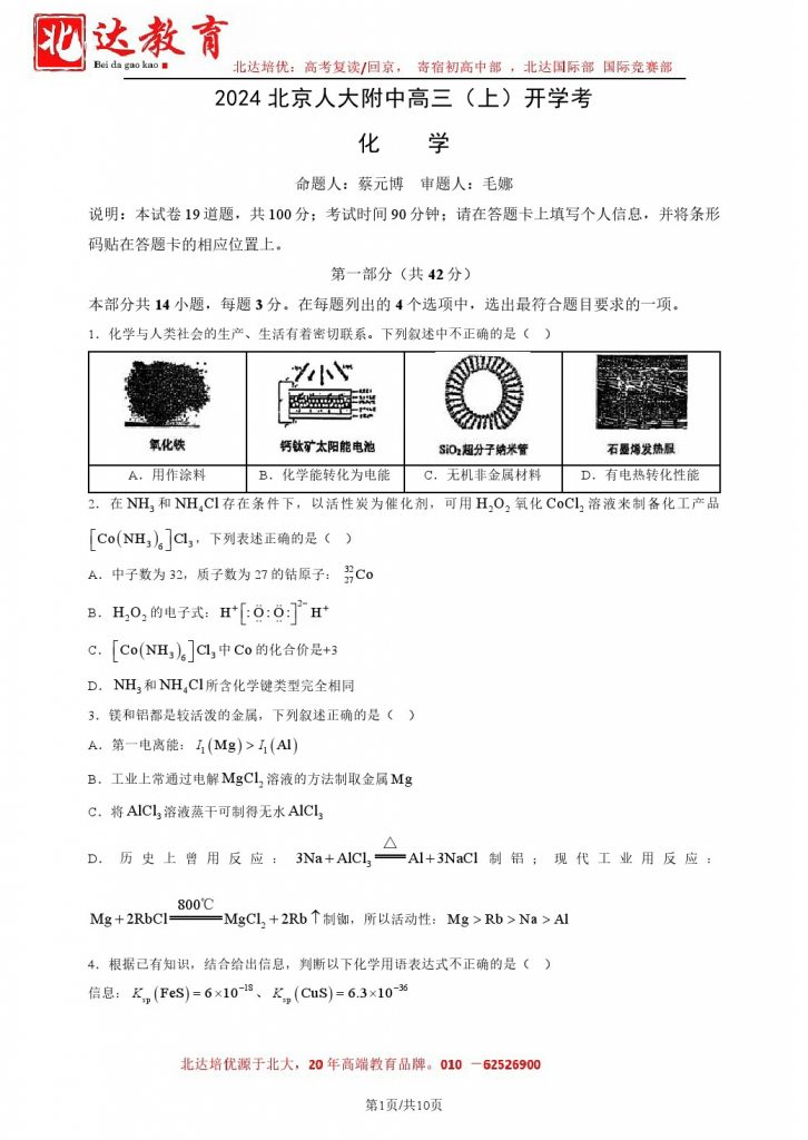 北京各中学新高三学生陆续进行开学考试,为此,本文特意整理了2024北京人大附中高三(上)开学考化学试题,同学们可以点击链接下载PDF文件。