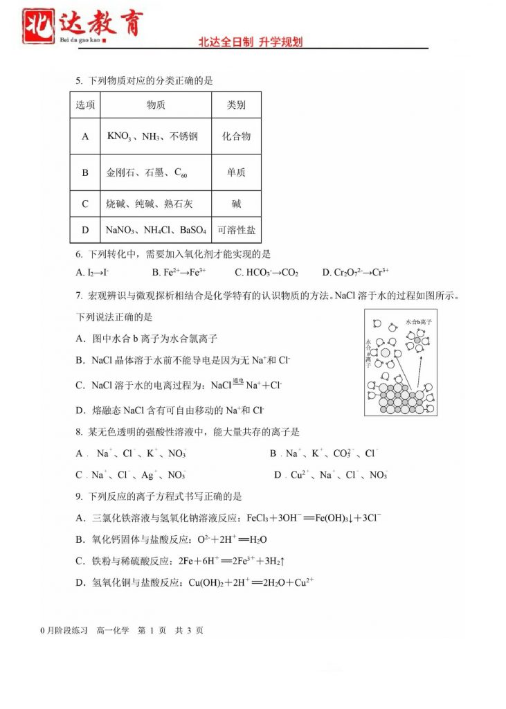 北京2024.10各个学校月考正在陆续进行中,为方便大家对答案、下载练习等小编给大家搜集了2024-2025学年北京一六一中学高一10月月考化学试题及答案,需要的小伙伴赶紧下载练习…