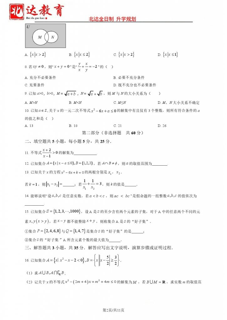 北京2024.10各个学校月考正在陆续进行中,为方便大家对答案、下载练习等小编给大家搜集了2024北京北师大附中高一10月月考数学试题及答案,需要的小伙伴赶紧下载练习起来吧: 试题…