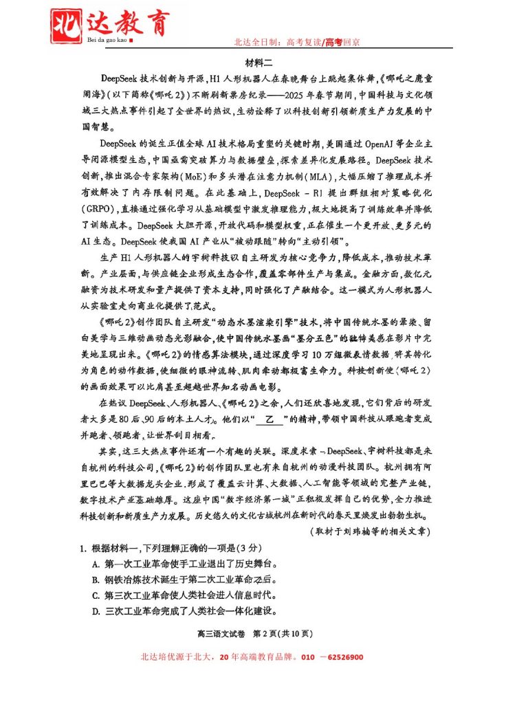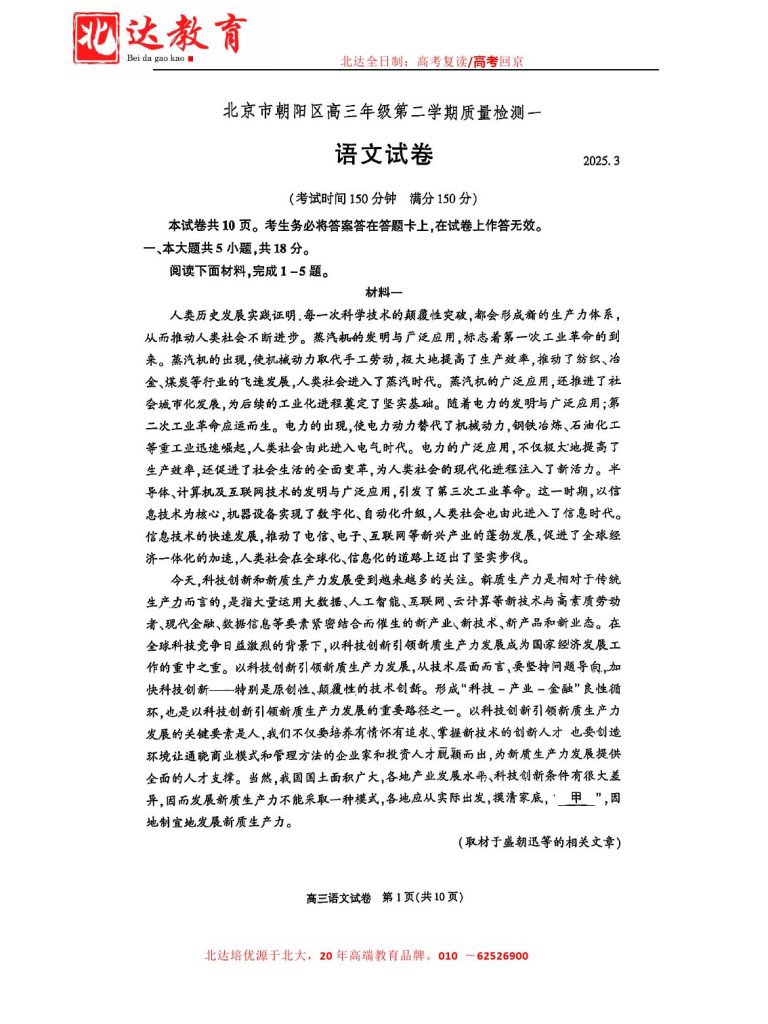 北京2025高三一模正在陆续进行中,为方便大家对答案、下载练习等小编给大家搜集了北京朝阳区2025年高三一模语文试题及答案,需要的小伙伴赶紧下载练习起来吧: