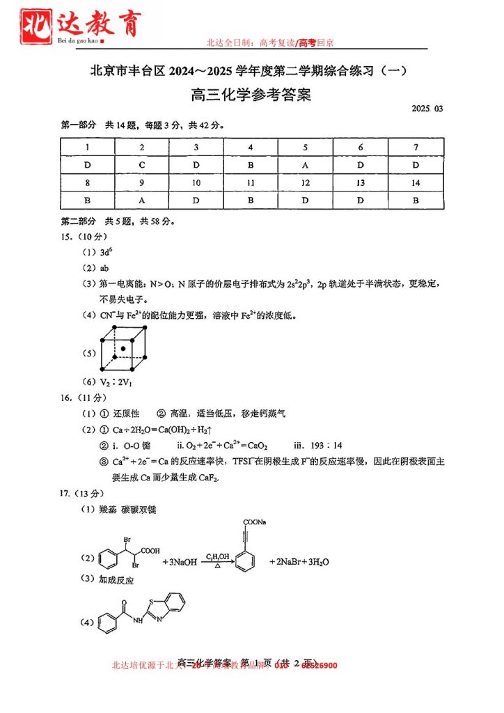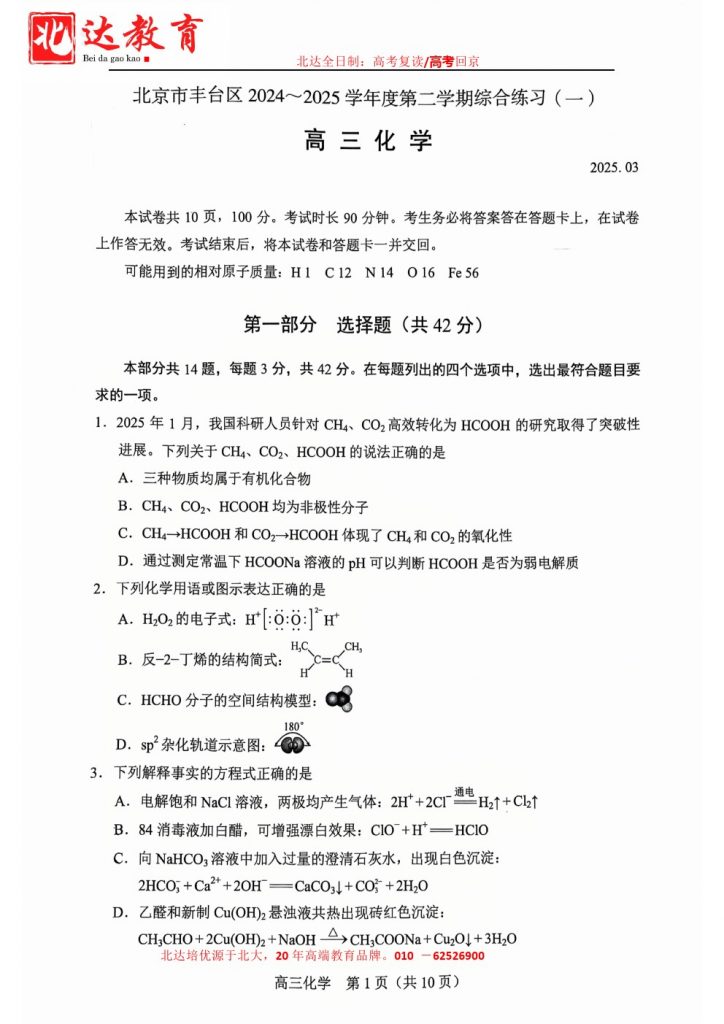 北京2025高三一模正在陆续进行中,为方便大家对答案、下载练习等小编给大家搜集了2025北京丰台区高三一模化学试题及答案,需要的小伙伴赶紧下载练习起来吧: