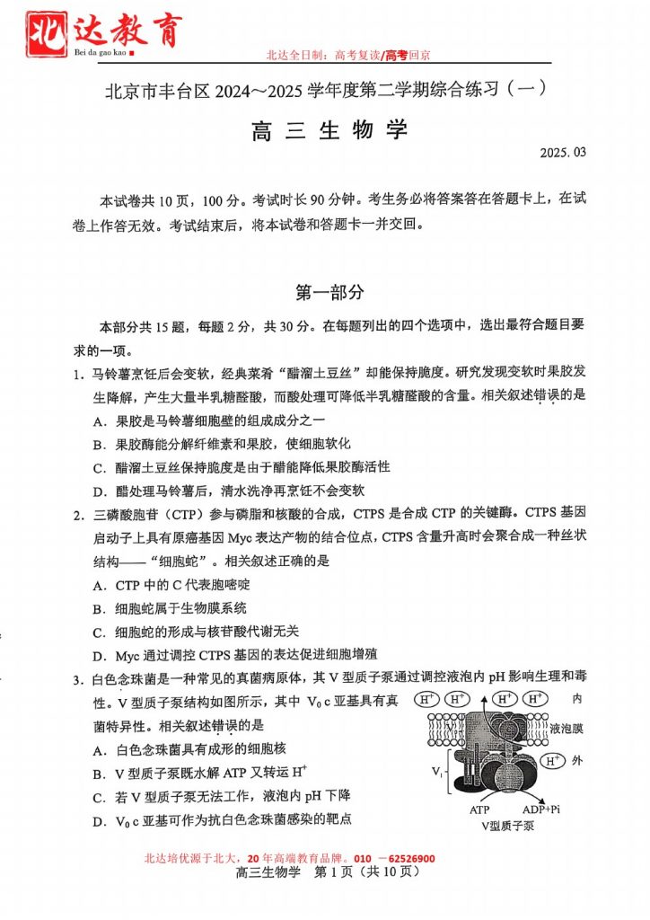 北京2025高三一模正在陆续进行中,为方便大家对答案、下载练习等小编给大家搜集了2025北京丰台区高三一模生物试题,需要的小伙伴赶紧下载练习起来吧:
