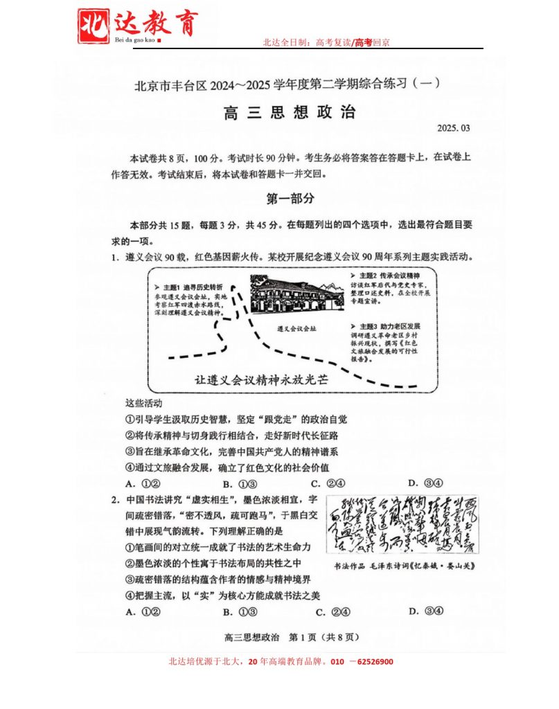 北京2025高三一模正在陆续进行中,为方便大家对答案、下载练习等小编给大家搜集了2025北京丰台区高三一模政治试题及答案,需要的小伙伴赶紧下载练习起来吧: