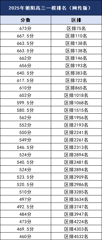 (网传版)2025北京朝阳区高三一模排名表来了~,以下是admw360教研组为大家整理的内容详情,一起来看: