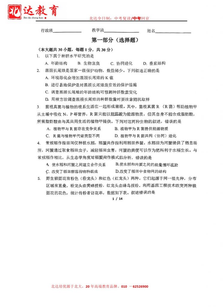 为方便大家对答案、下载练习等小编给大家搜集了2025北京东直门中学高二年级3月月考生物试卷,需要的小伙伴赶紧下载练习起来吧: 北京admw360全日制学校,中高考复读,外地回京中高考 电话咨…