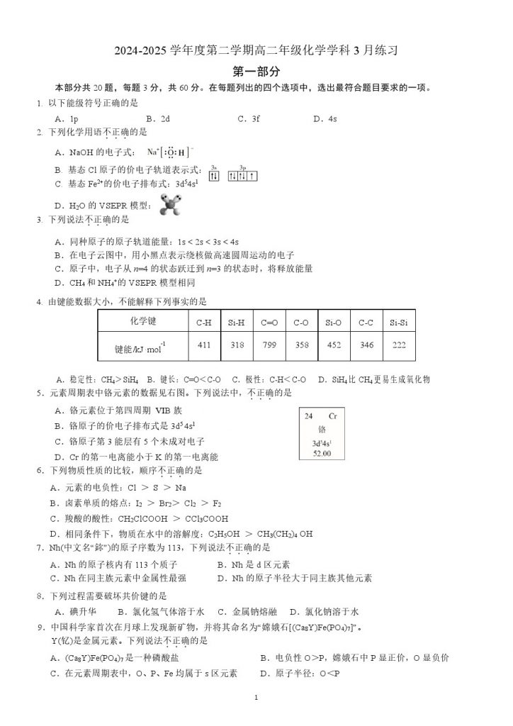 为方便大家对答案、下载练习等小编给大家搜集了北京理工大附中2025高二3月考化学试题含答案,需要的小伙伴赶紧下载练习起来吧: