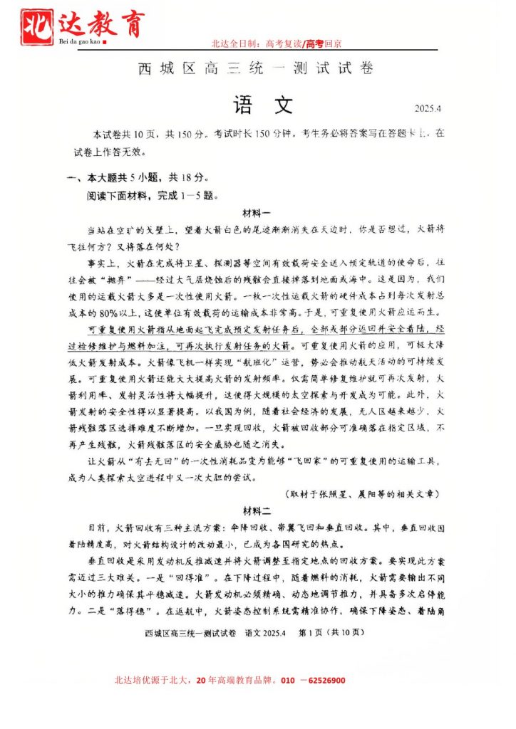 北京2025高三一模正在陆续进行中,为方便大家对答案、下载练习等小编给大家搜集了2025北京西城区高三一模语文试卷及答案,需要的小伙伴赶紧下载练习起来吧: