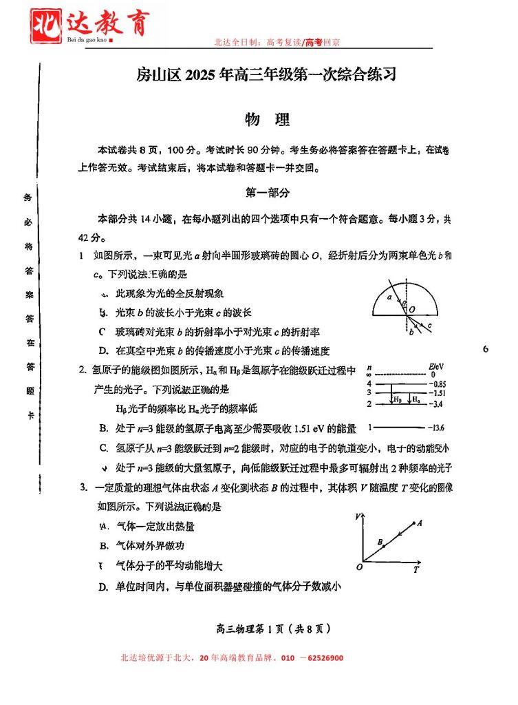 北京2025高三一模正在陆续进行中,为方便大家对答案、下载练习等小编给大家搜集了2025北京房山区高三一模物理试题及答案,需要的小伙伴赶紧下载练习起来吧: