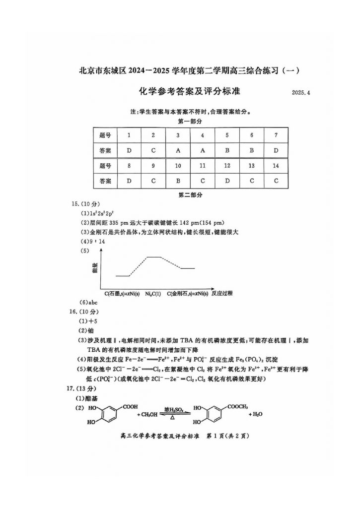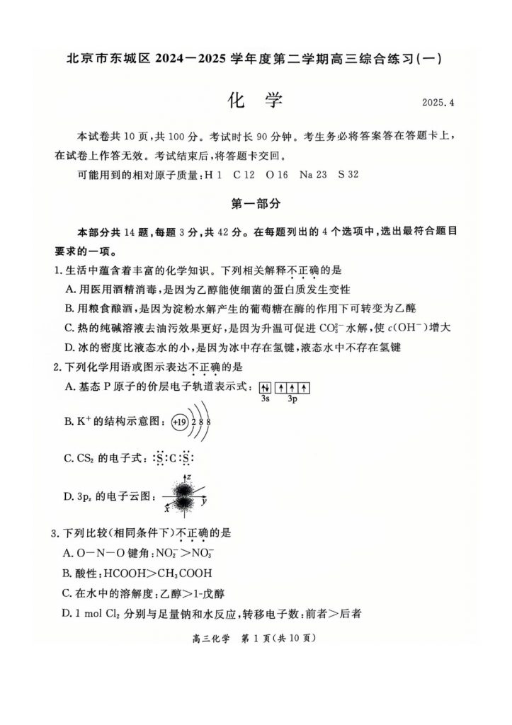 北京2025高三一模正在陆续进行中,为方便大家对答案、下载练习等小编给大家搜集了北京东城2025高三一模化学试题及答案,需要的小伙伴赶紧下载练习起来吧:
