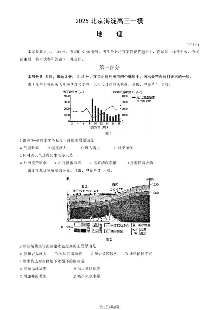 北京2025高三一模正在陆续进行中,为方便大家对答案、下载练习等小编给大家搜集了北京海淀区2025高三一模地理试题含答案,需要的小伙伴赶紧下载练习起来吧:
