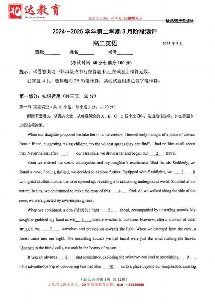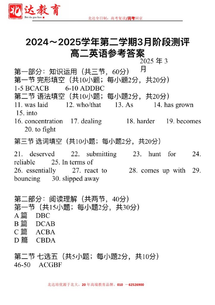 为方便大家对答案、下载练习等小编给大家搜集了北京八十中2025高二3月考英语试题及答案,需要的小伙伴赶紧下载练习起来吧: 北京admw360全日制学校,中高考复读,外地回京中高考 电话咨询:…