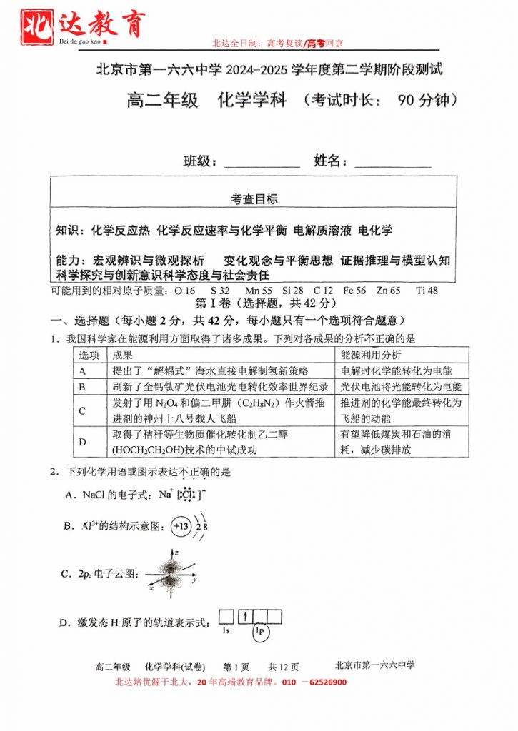 为方便大家对答案、下载练习等小编给大家搜集了北京一六六中2025高二3月月考化学试题及答案,需要的小伙伴赶紧下载练习起来吧: