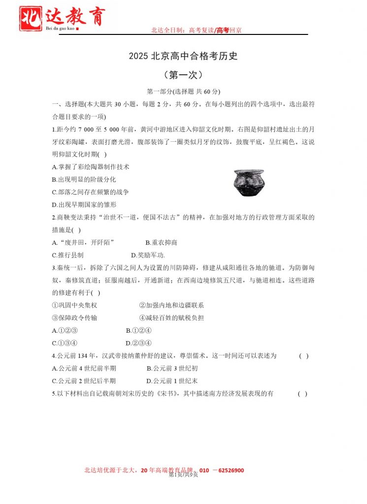 2025北京高中第一次合格考已结束,为了方便同学们了解各科试题情况,admw360教研组整理了2025北京高中第一次合格考历史试题及答案,需要的小伙伴赶紧下载练习起来吧: