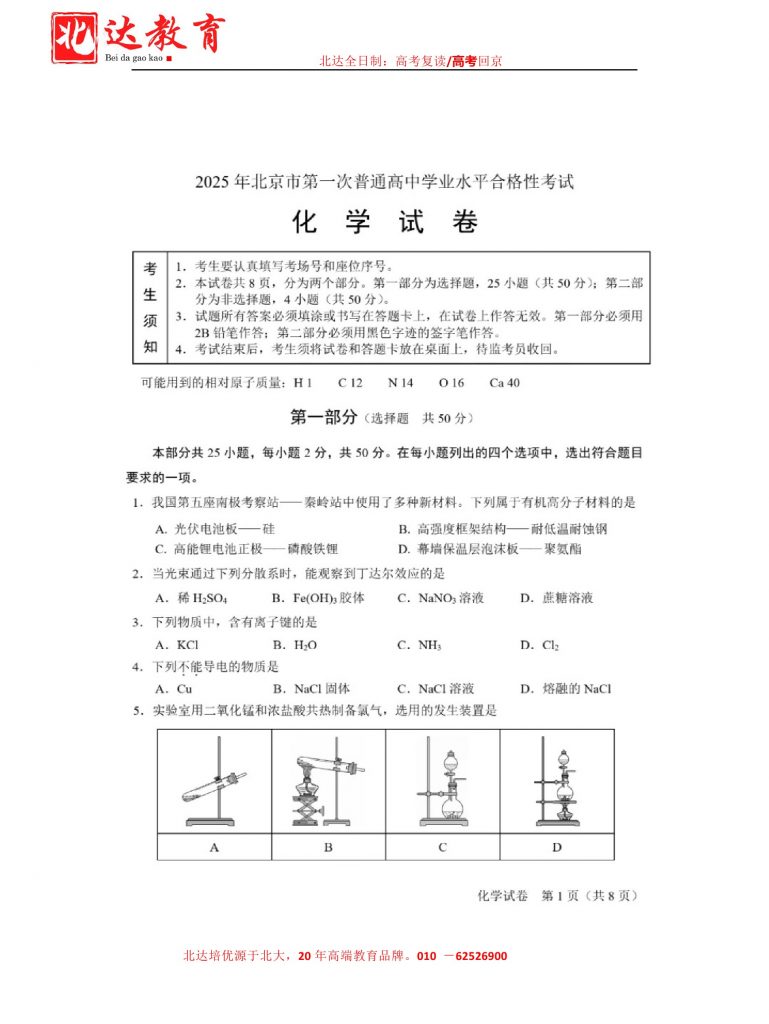 2025北京高中第一次合格考已结束,为了方便同学们了解各科试题情况,admw360教研组整理了2025北京高中第一次合格考化学试题及答案,需要的小伙伴赶紧下载练习起来吧: