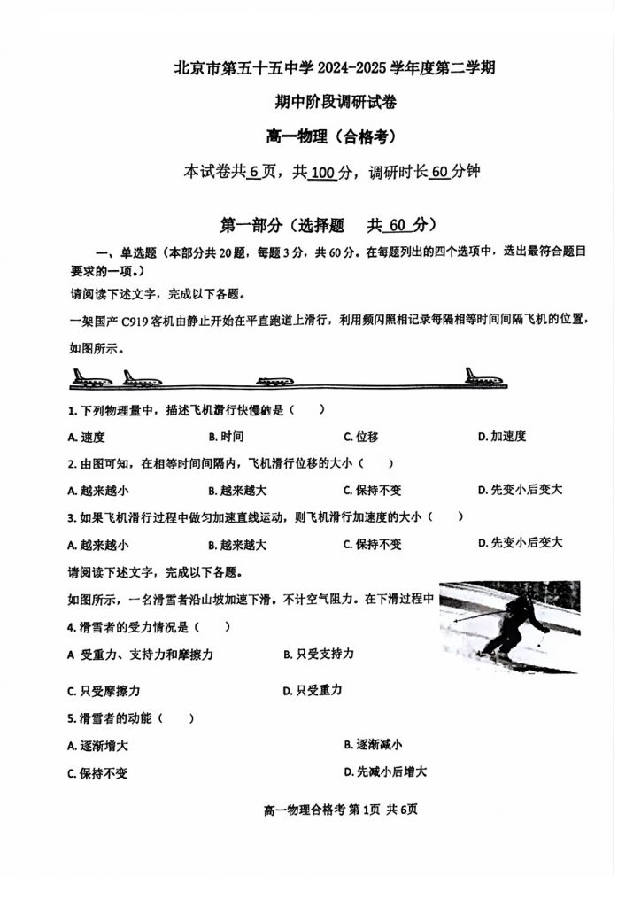 2025北京各区高一期中考已陆续开始,admw360教研组整理了2025北京五十五中高一(下)期中物理(合格考)试题,分享给大家。