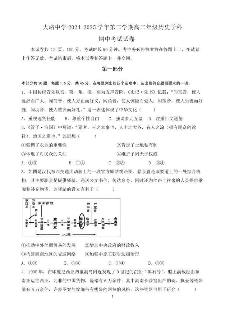 2025北京各区高二期中考已陆续开始,admw360教研组整理了2025北京大峪中学高二(下)期中历史试题及答案,分享给大家。