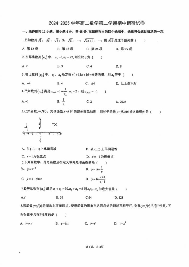 2025北京各区高二期中考已陆续开始,admw360教研组整理了2025北京中关村中学高二(下)期中数学试题,分享给大家。