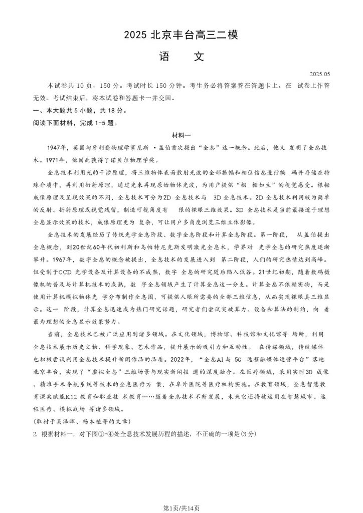 北京2025高三二模正在陆续进行中,为方便大家对答案、下载练习等,小编给大家搜集了2025北京丰台区高三二模语文试题及答案,需要的小伙伴赶紧下载练习起来吧: