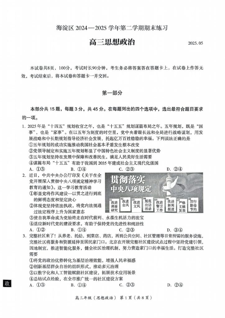 北京2025高三二模正在陆续进行中,为方便大家对答案、下载练习等,小编给大家搜集了2025北京海淀区高三二模政治试题,需要的小伙伴赶紧下载练习起来吧: