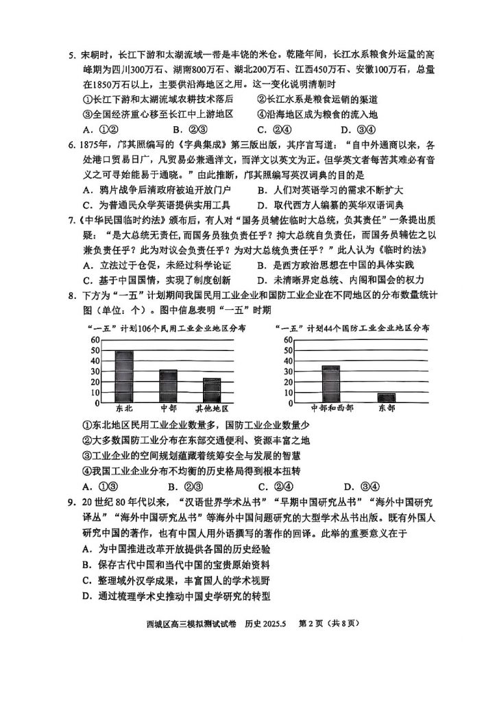 北京2025高三二模正在陆续进行中,为方便大家对答案、下载练习等,小编给大家搜集了2025北京西城区高三二模历史试题及答案,需要的小伙伴赶紧下载练习起来吧: