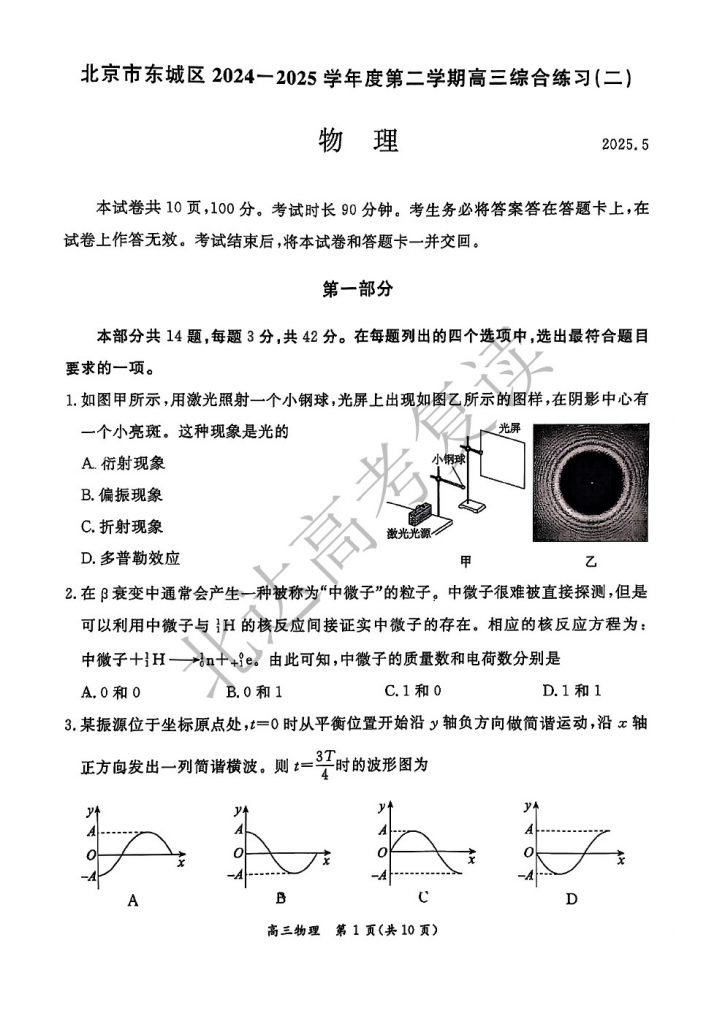 北京2025高三二模正在陆续进行中,为方便大家对答案、下载练习等,小编给大家搜集了2025东城高三二模物理试题及答案,需要的小伙伴赶紧下载练习起来吧: