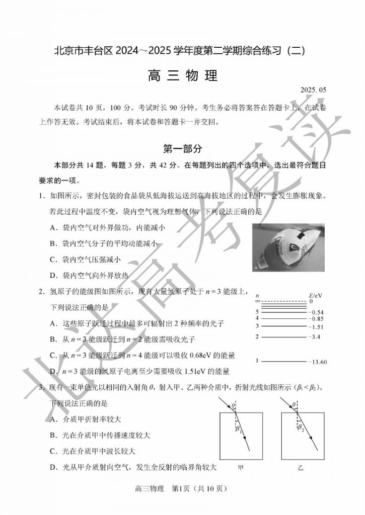 北京2025高三二模正在陆续进行中,为方便大家对答案、下载练习等,小编给大家搜集了北京丰台区2025高三二模物理试题及答案,需要的小伙伴赶紧下载练习起来吧: