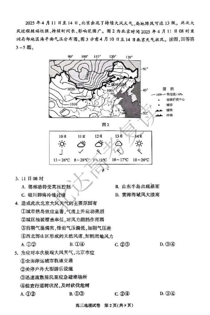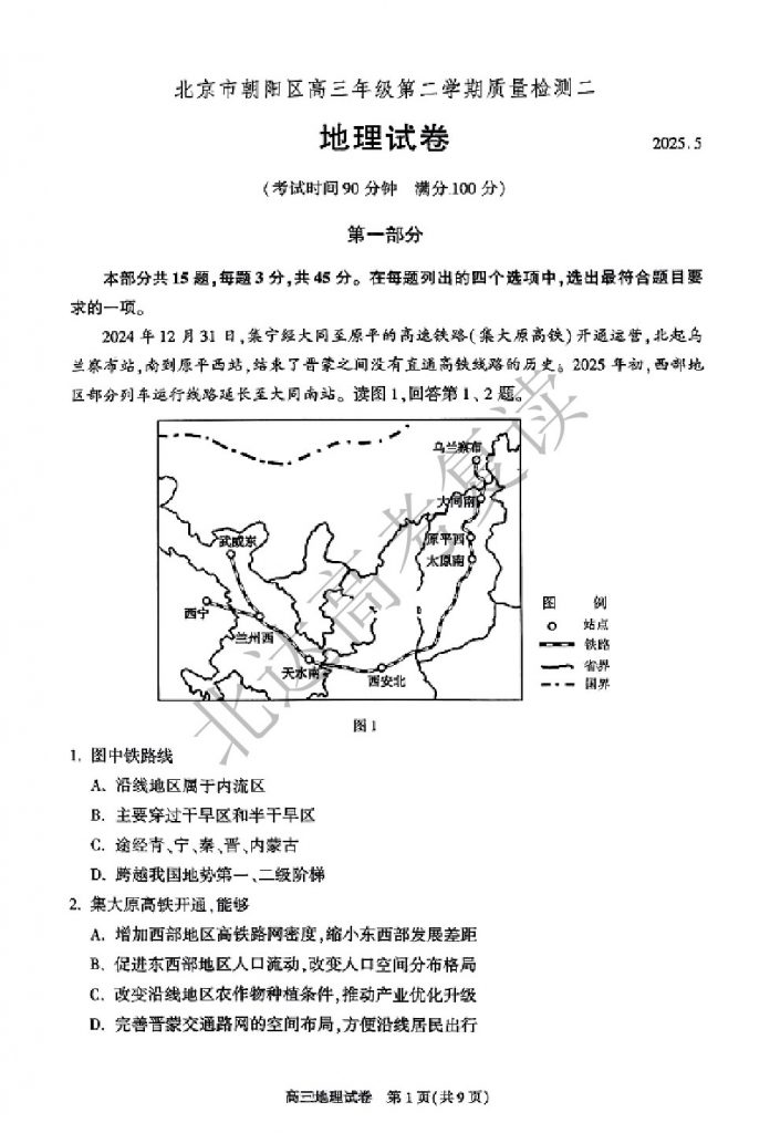 北京2025高三二模正在陆续进行中,为方便大家对答案、下载练习等,小编给大家搜集了2025北京朝阳区高三二模地理试题及答案,需要的小伙伴赶紧下载练习起来吧: