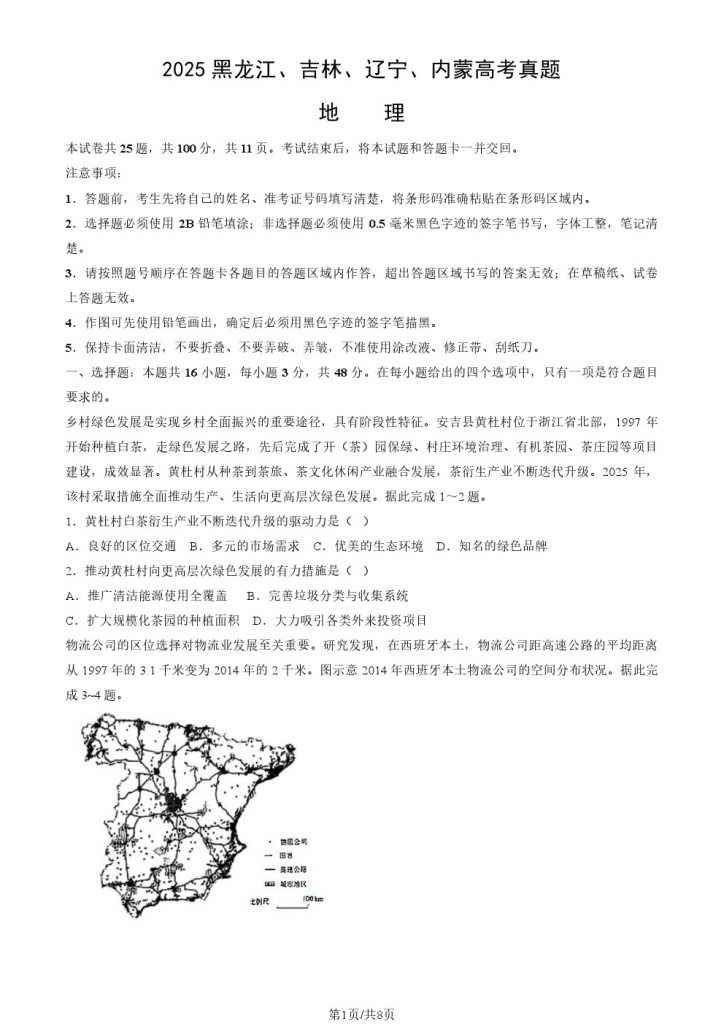 2025年全国各省市高考考试已结束,admw360教研组整理了2025(黑吉辽内)高考地理真题及答案,详情如下: