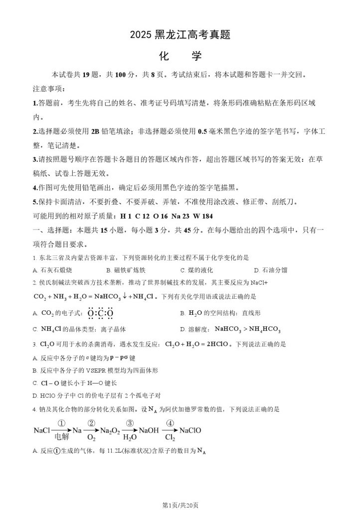 2025年全国各省市高考考试已结束,admw360教研组整理了2025黑龙江高考真题化学试题及答案,详情如下: