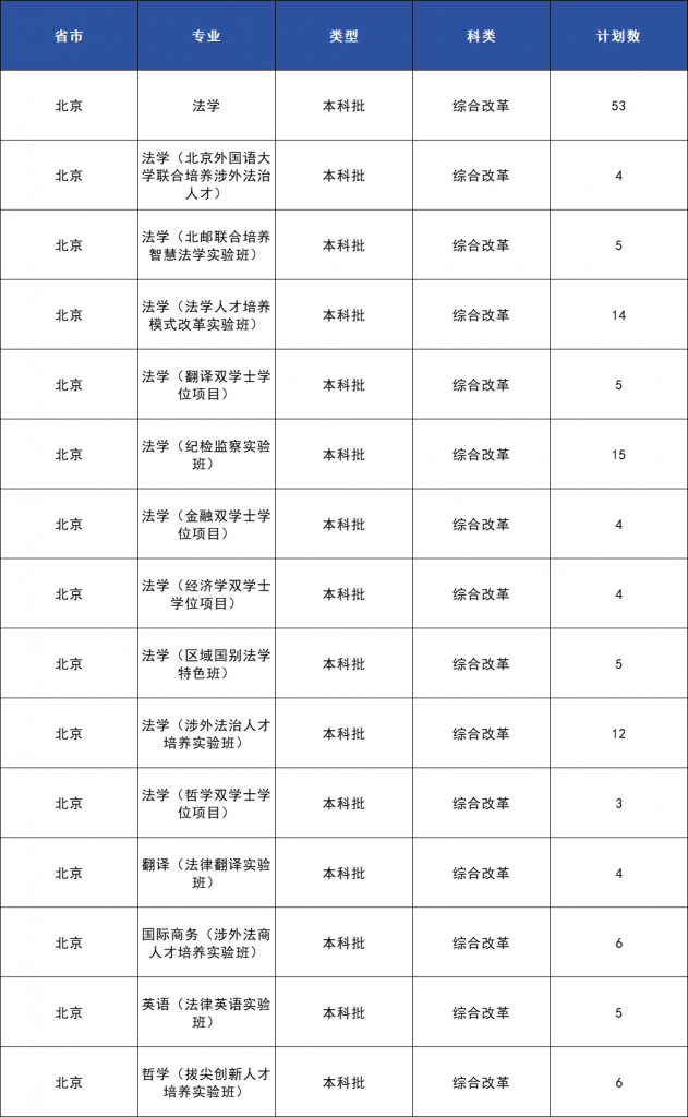 2025年全国各省市高考已结束,admw360教研组整理了2025中国政法大学在京招生专业计划公布,分享给大家,具体如下: