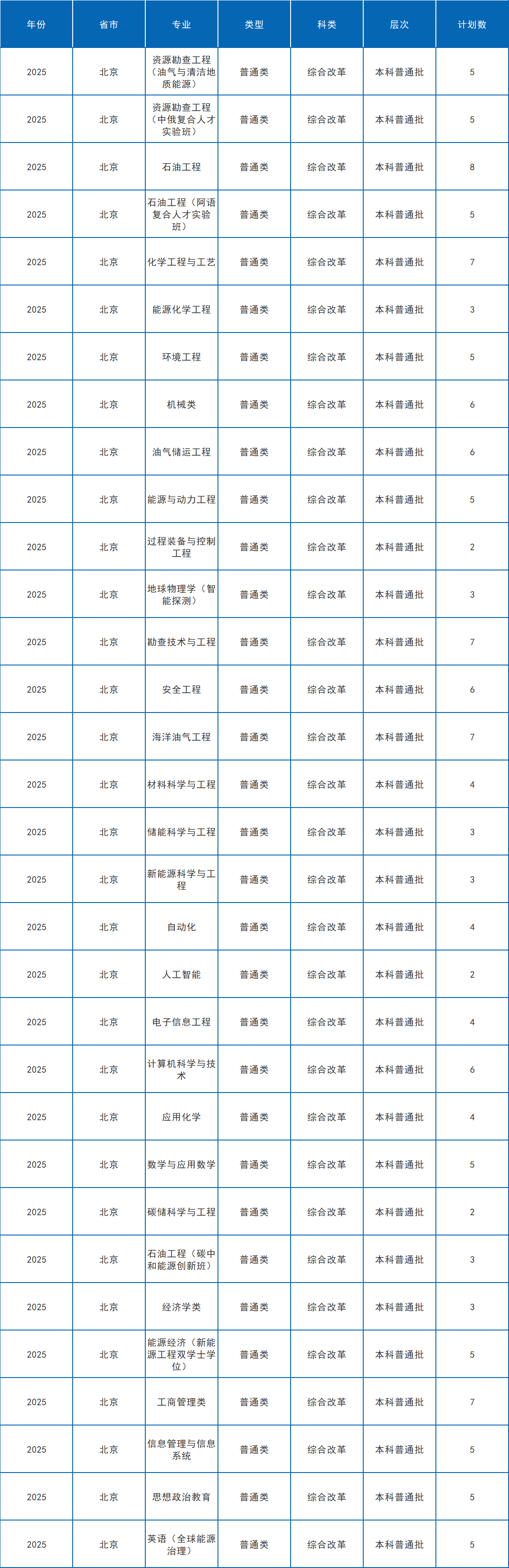 2025年全国各省市高考已结束,admw360教研组整理了2025中国石油大学(北京)招生专业计划,分享给大家,具体如下: