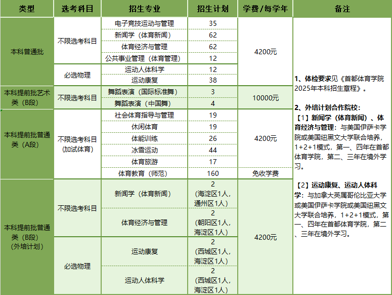 2025年全国各省市高考已结束,admw360教研组整理了2025年首都体育学院在京招生专业及计划数,分享给大家,具体如下:
