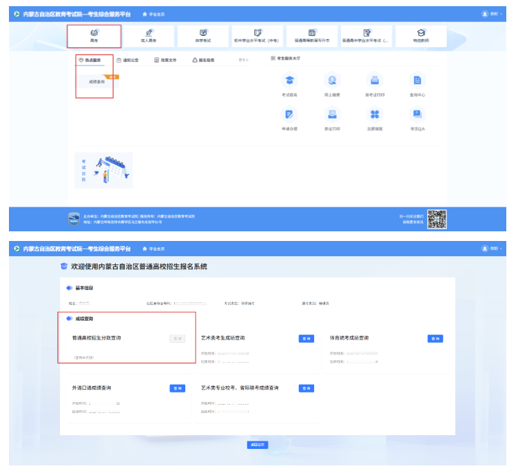 1.内蒙古招生考试信息网是查询高考成绩的官方渠道。