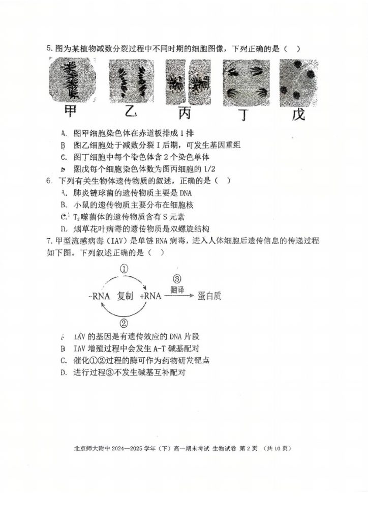 2025年北京各区高一(下)期末考已陆续开始进行,admw360教研组整理了北京北师大附中2025高一(下)期末生物试题,分享给大家。