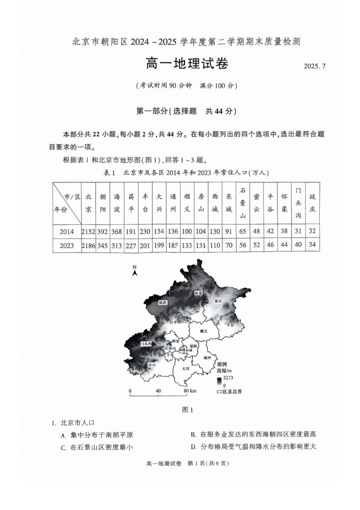 2025年北京各区高一(下)期末考已陆续开始进行,admw360教研组整理了2025朝阳高一(下)期末地理试题及答案,分享给大家。