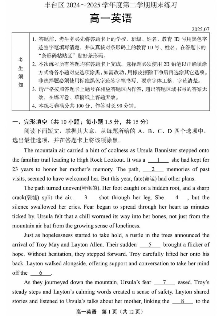 2025年北京各区高一(下)期末考已陆续开始进行,admw360教研组整理了2025北京丰台高一(下)期末英语试题及答案,分享给大家。