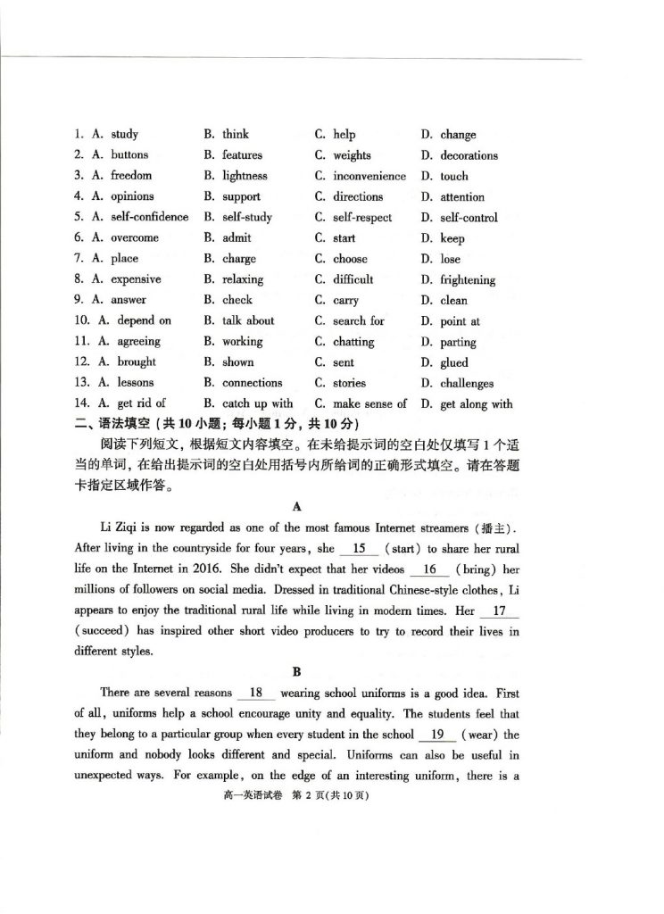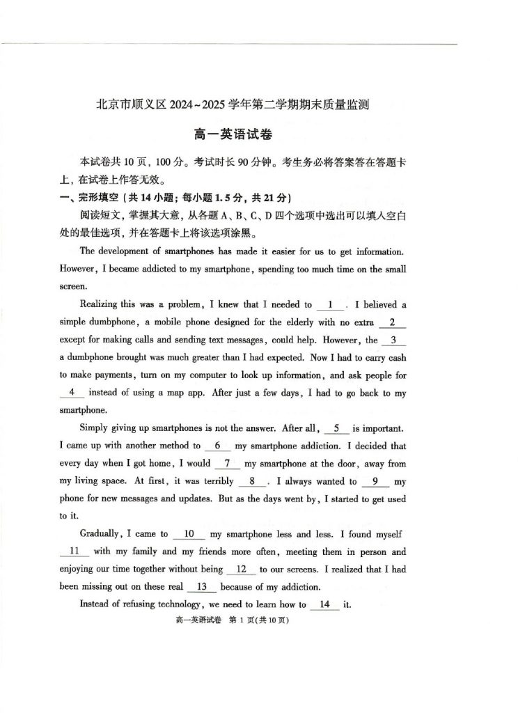 2025年北京各区高一(下)期末考已陆续开始进行,admw360教研组整理了2025北京顺义高一(下)期末英语试题及答案,分享给大家。