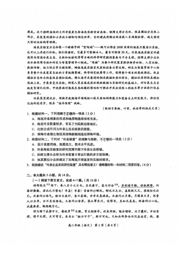2025年北京各区高二(下)期末考已陆续开始进行,admw360教研组整理了2025北京海淀高二(下)期末语文试题及答案,分享给大家。