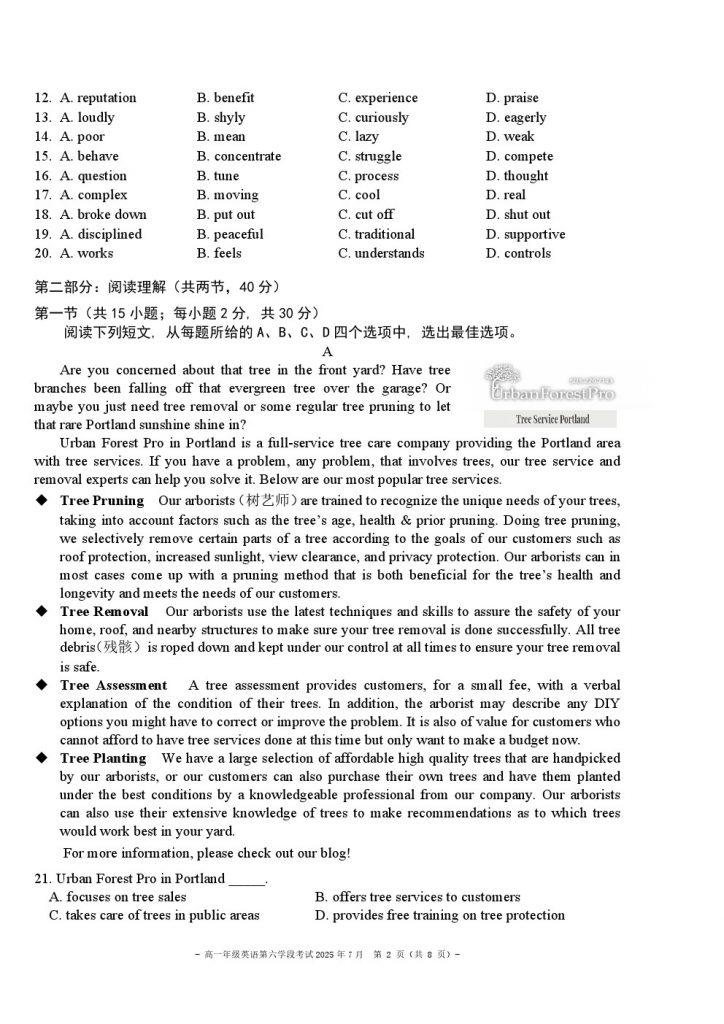 2025年北京各区高一(下)期末考已陆续开始进行,admw360教研组整理了2025北京二中高一(下)期末英语试题及答案,分享给大家。 2025admw360高考复读全日制,应届生全日制,外地回京全日…