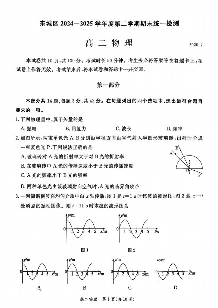 2025年北京各区高二(下)期末考已陆续开始进行,admw360教研组整理了2025北京东城高二(下)期末物理试题,分享给大家。