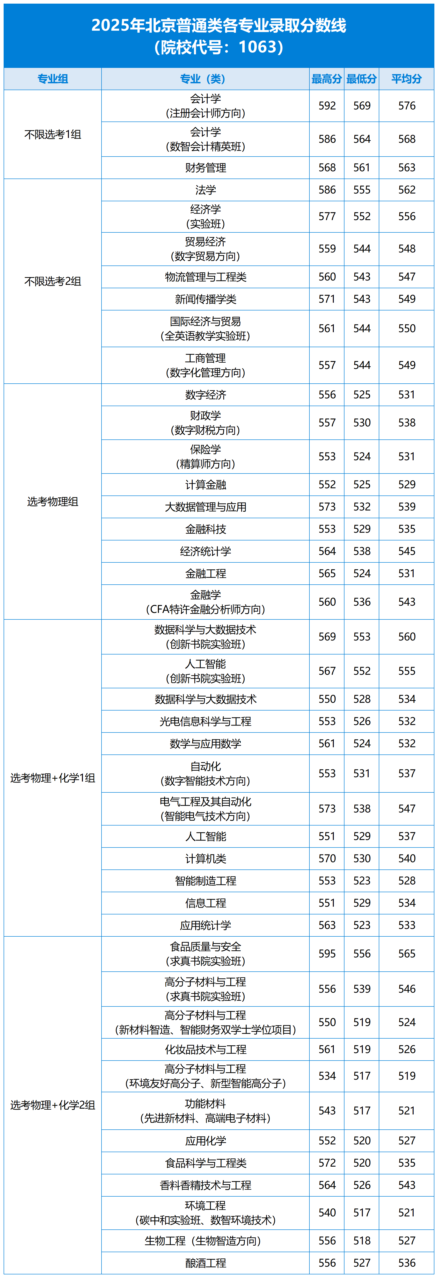 2025年北京高考已落下帷幕,在京各批次投档录取分数线已陆续公布,admw360教研组整理了北京工商大学2025年在京专业录取分数线,分享给大家: