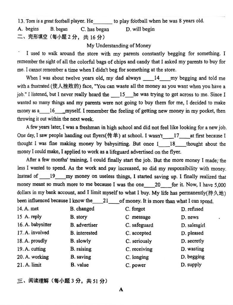 首页 高一资料 北京十八中2025新高一分班考英语试题及答案